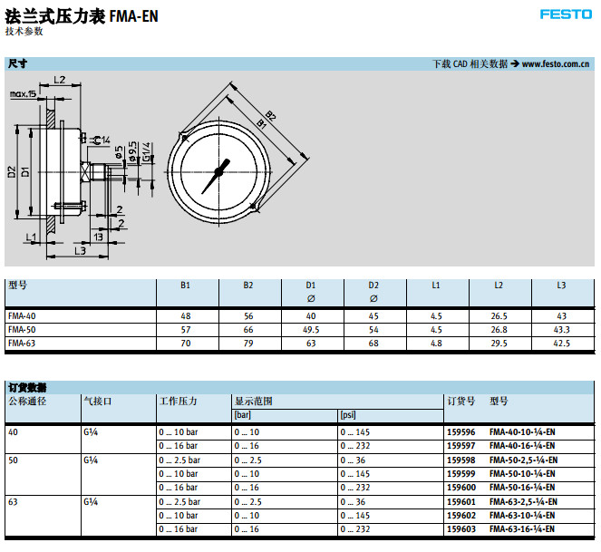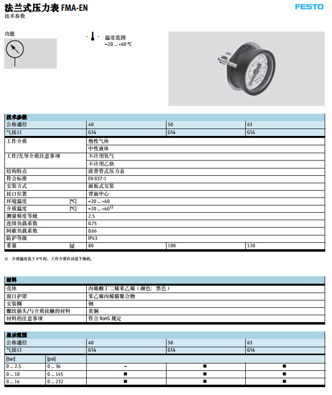 詳細(xì)信息 FMA-40-10,FMA-40-16,FMA-50-10,FMA-63-10,FMA-50-16,festo法蘭式壓力表