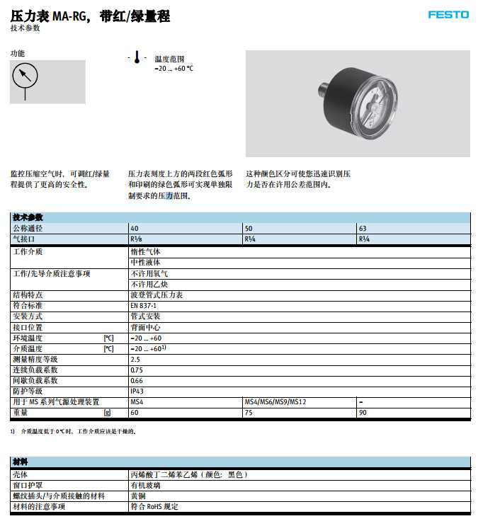 MA-40-2.5-R1/8,MA-50-10-R1/4,MA-63-16-R1/4-MPA-E-RG,festo壓力表
