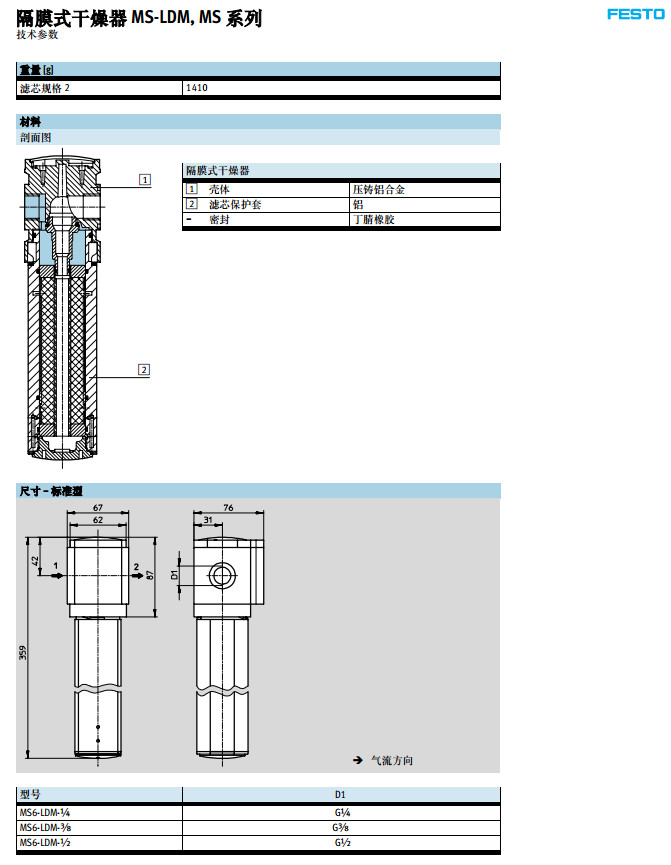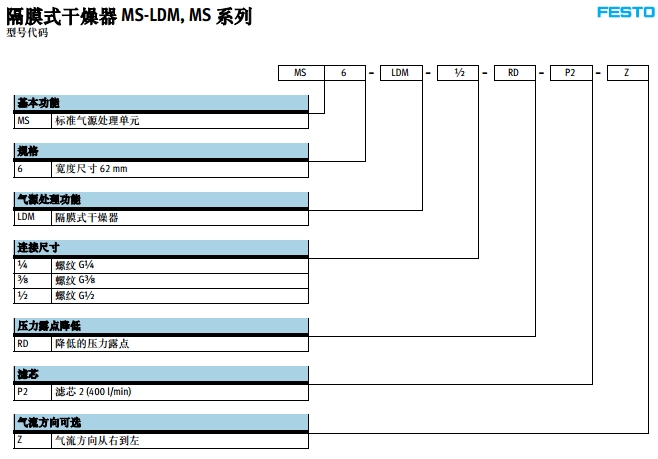 MS6-LDM-1/4-RD-P2-Z,MS6-LDM-3/8-RD-P2-Z,MS6-LDM-1/2-RD-P2-Z,festo隔膜式干燥器