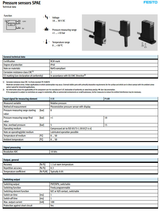 詳細(xì)信息 SPAE-P10R-S4-PNLK,SPAE-V1R-Q3-PNLK,SPAE-V1R-F-PNLK,festo壓力傳感器