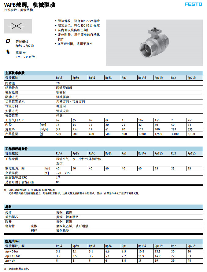 型號: VAPB-1/4,VAPB-3/8,VAPB-1/2,VAPB-1,VAPB-2,VAPB-3,festo球閥