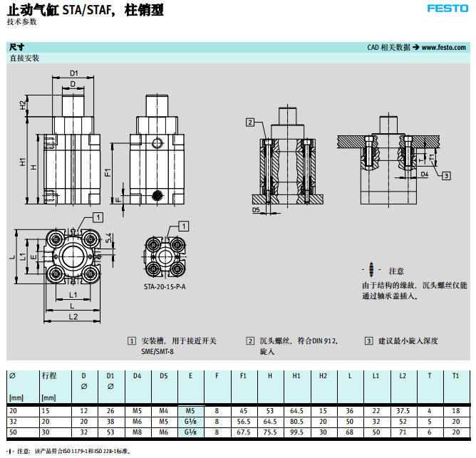 STA-20,STA-32,STA-50,STAF-32,STAF-50-30-P-A,festo止動(dòng)氣缸