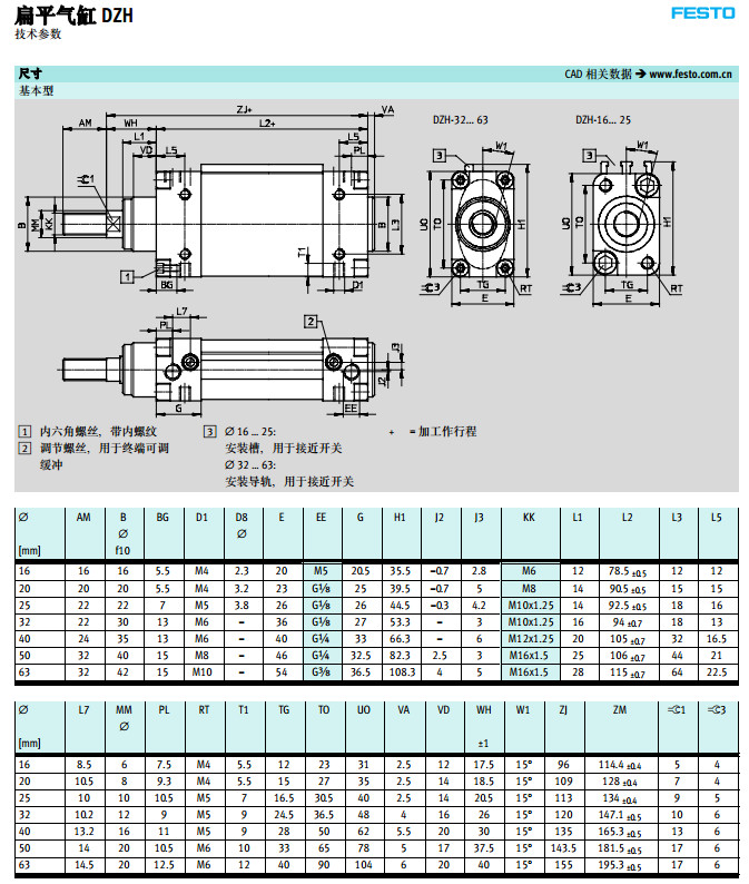 DZH-16,DZH-20,DZH-25,DZH-32,DZH-40,DZH-50,DZH-63,festo扁平氣缸 |