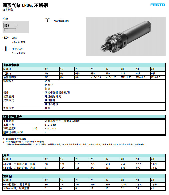 詳細(xì)信息 CRDG-12,CRDG-16,CRDG-20,CRDG-25,CRDG-32,CRDG-40,festo圓形氣缸
