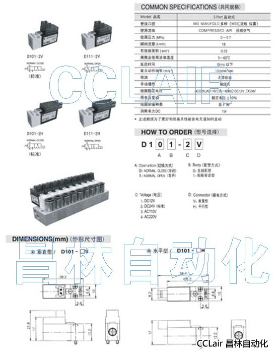 D101-1V,D101-2V,D101-3V,D101-4V,3通直動型電磁閥