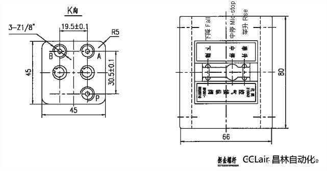 當(dāng)手柄在: “下降”位置時(shí),P腔與B腔通,A腔不工作。