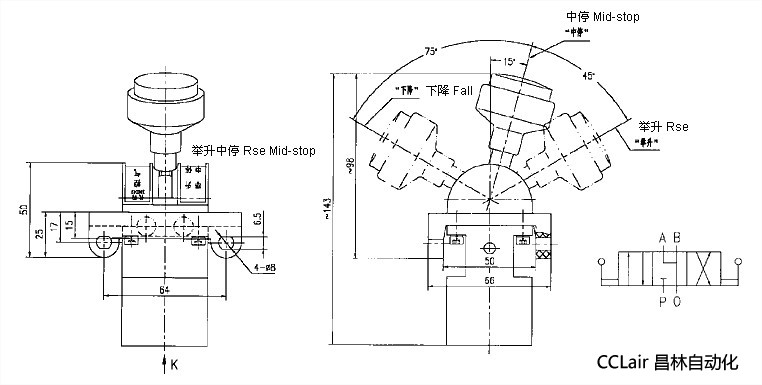 當(dāng)手柄在: “舉升”位置時(shí),P腔與A腔通,B腔不工作;