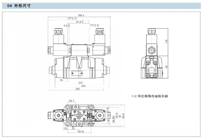 二、技術(shù)參數(shù):規(guī)格 06 10 最高工作壓力 (MPa) 31.5 最大流量 (L/min) 220 430 工作介質(zhì) 礦物質(zhì)液壓油;磷酸脂 介質(zhì)油溫范圍 (℃) -20~70 介質(zhì)粘度范圍 (mm2/s) 2.8~380 開啟壓力 (MPa) a:0.05 b:0.4 工作電壓 (V) 直流 24 *交流 127, 220 防護(hù)等級 IP55