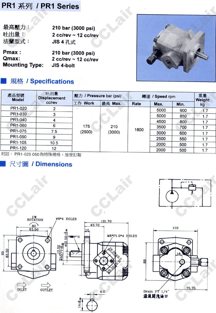 詳細(xì)信息 PR1-020,PR1-030,PR1-040,PR1-060,PR1-075,PR1-090,PR1-105,PR1-120,齒輪泵