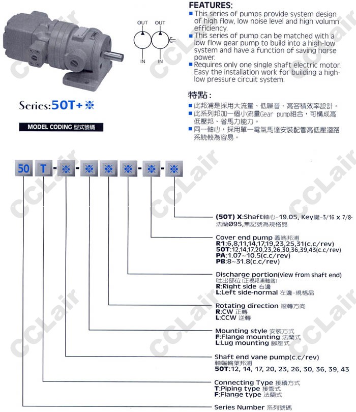 型號: 50F-12-FRR+50T,50T-14,50T-17,50T-20,50T-23,50T-26,50F-30-FRR+PA-X,50F-36,50F-39,50F-43,葉片泵