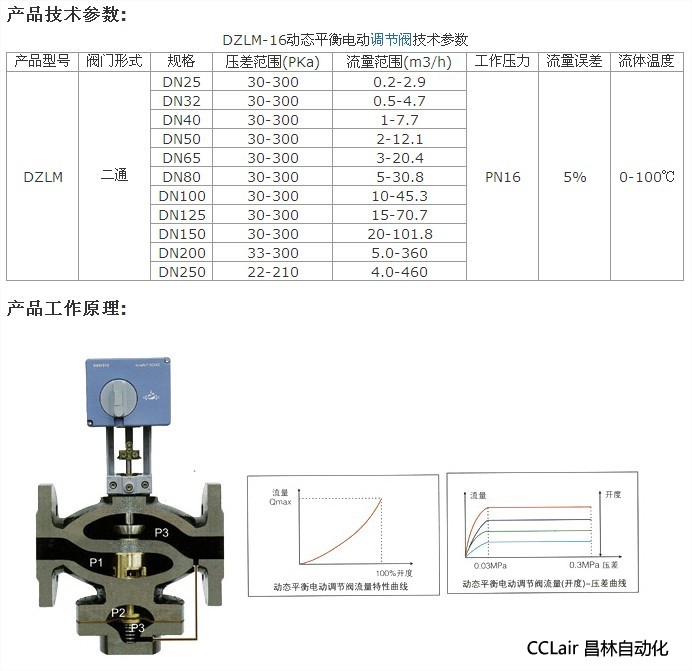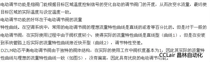 DZLM-16動態(tài)平衡電動調節(jié)閥是動態(tài)平衡與電動調節(jié)一體化的產品,主要適用于暖通空調系統(tǒng)末端空調設備(如空調箱、新風機組、空氣處理機)的溫度控制,通過配置智能模塊控制裝置,可方便的對各環(huán)路的流量、溫度進行自動控制,實現(xiàn)合理利用能量,節(jié)能降耗,智能化管理。應用此閥使末端設備只受標準控制信號的影響,而不受系統(tǒng)壓力波動的影響,使系統(tǒng)調節(jié)更穩(wěn)定、更節(jié)能,特別適用于系統(tǒng)負荷變化較大的變流量系統(tǒng)中。