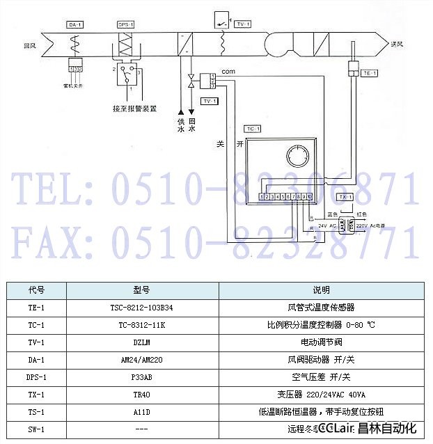 當盤管后的溫度低于某限值時,低溫保護開關(guān)TS一1切斷送風機的電源,從而