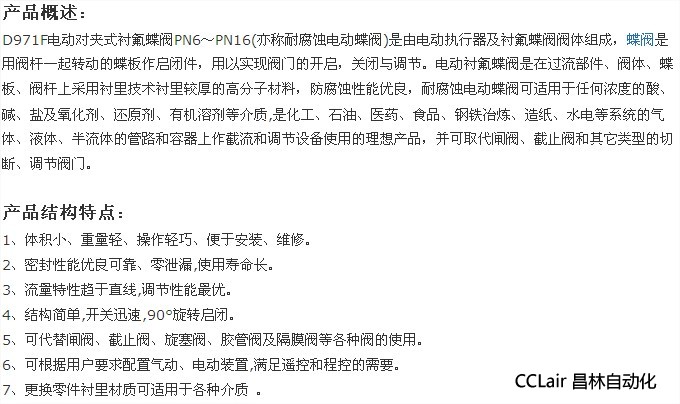 » D971F-16,電動對夾式襯氟蝶閥