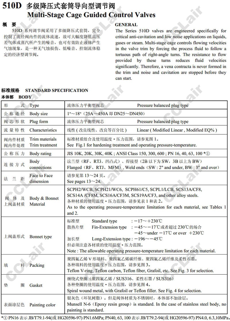 510D-52000LA,510D-3500LB,510D-3600LA,510D-6300LA,多級降壓式套筒導向型調節(jié)閥