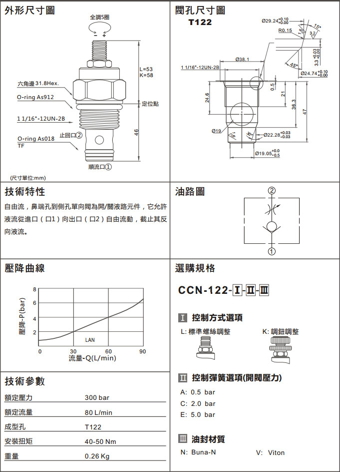CCN-122-LAN,CCN-122-LCN,CCN-122-LAV,CCN-122-KEN,CCN-122-KCV,CCN-122-LEN,CCN-122-LCV,CCN-122-LEV,CCN-122-KAN, CCN-122-KCN,CCN-122-KAV,CCN-122-KEV,單向閥(口1通口2自由流,附調(diào)整桿)