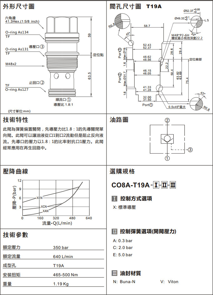詳細(xì)信息 CO8A-T19A-XAN,CO8A-T19A-XCN,CO8A-T19A-XEN,CO8A-T19A-XAV,CO8A-T19A-XCV,CO8A-T19A-XEV,導(dǎo)壓關(guān)單向閥
