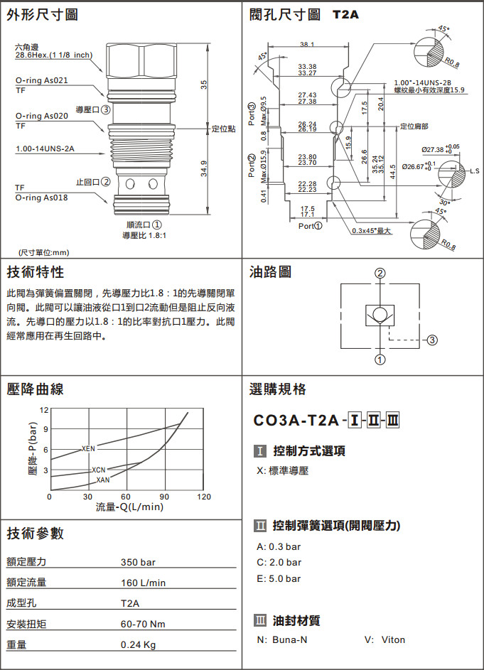 CO3A-T2A-XAN,CO3A-T2A-XCN,CO3A-T2A-XEN,CO3A-T2A-XAV,CO3A-T2A-XCV,CO3A-T2A-XEV,導壓關單向閥
