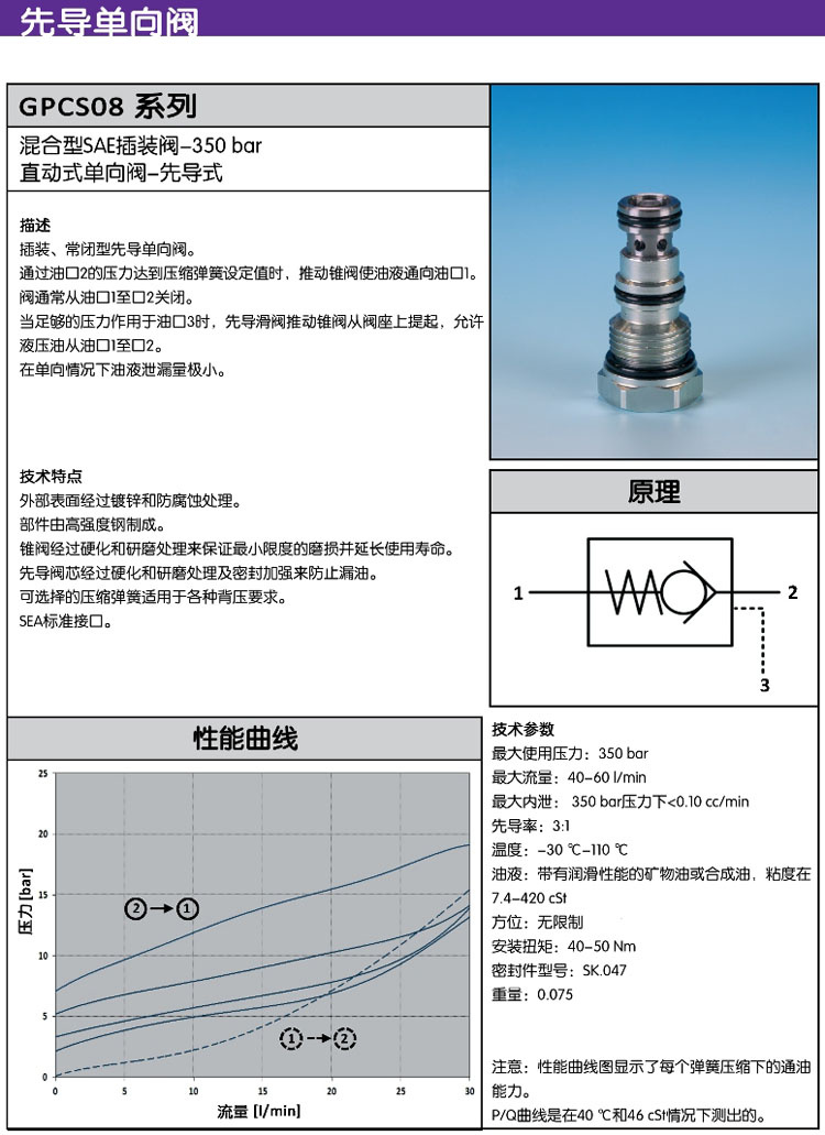 瀏覽次數(shù):656GPCS08,先導(dǎo)單向閥 |