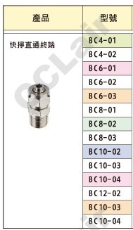 BC4-01,BC4-02,BC6-01,BC6-02,BC6-03,BC8-01,BC8-02,BC8-03,BC10-02,BC10-03,BC10-04,國鷹KUOIN快擰直通終端接頭