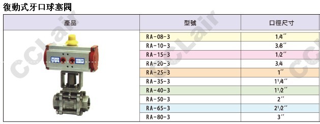 RA-08-3,RA-10-3,RA-15-3,RA-20-3,RA-25-3,RA-35-3,RA-40-3,RA-50-3,RA-65-3,RA-80-3,國鷹KUOIN復(fù)動式牙口球塞閥