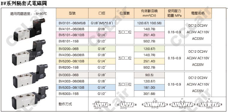 BV3101,BV4101,BV5101,BV6101,BV3200,BV4200,BV5200,BV6200,BV3303,BV4303,BV5303,BV6303,國鷹KUOIN隔套式電磁閥