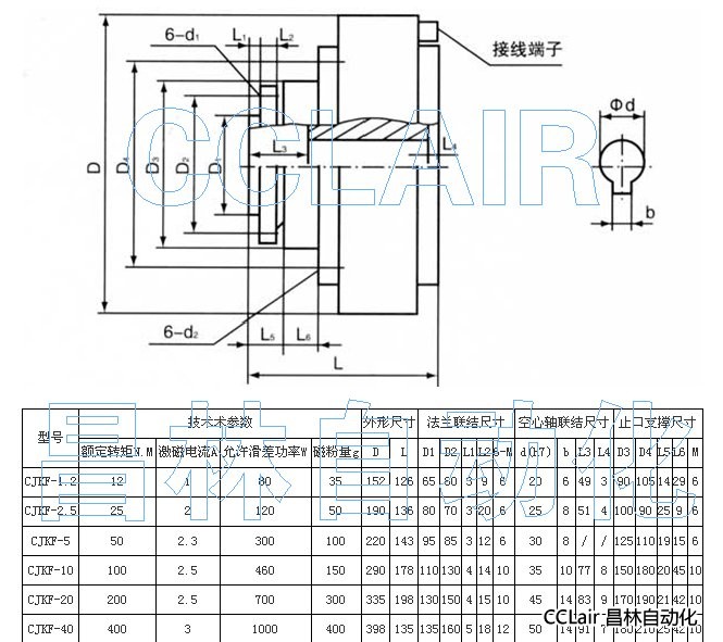 詳細(xì)信息 CJKF-1.2,CJKF-2.5,磁粉離合器(CJKF法蘭輸入、空心軸輸出止口支撐同側(cè)式、磁粉離合器)