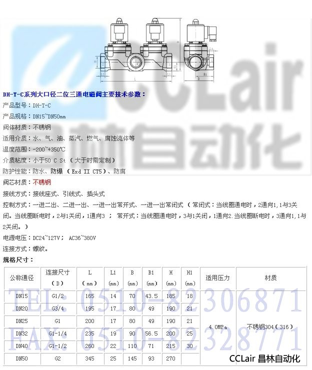 詳細信息 DH-T-C15,DH-T-C20,DH-T-C25,DH-T-C32,DH-T-C40,DH-T-C50,二位三通電磁閥