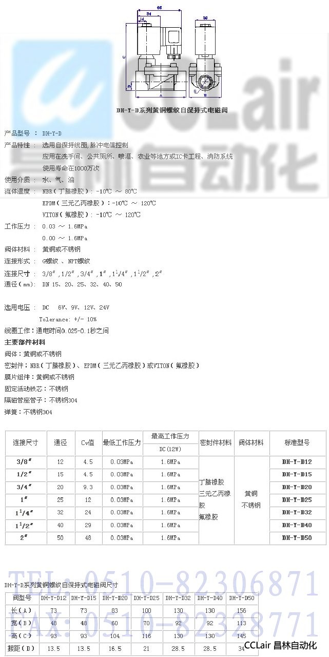 DH-Y-D12,DH-Y-D15,DH-Y-D20,DH-Y-D25,DH-Y-D32,DH-Y-D40,DH-Y-D40,自保持電磁閥