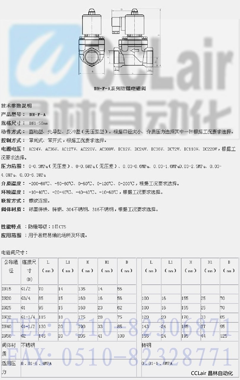 詳細(xì)信息 DH-F-A15,DH-F-A20,DH-F-A25,DH-F-A32,DH-F-A40,DH-F-A50,防爆電磁閥