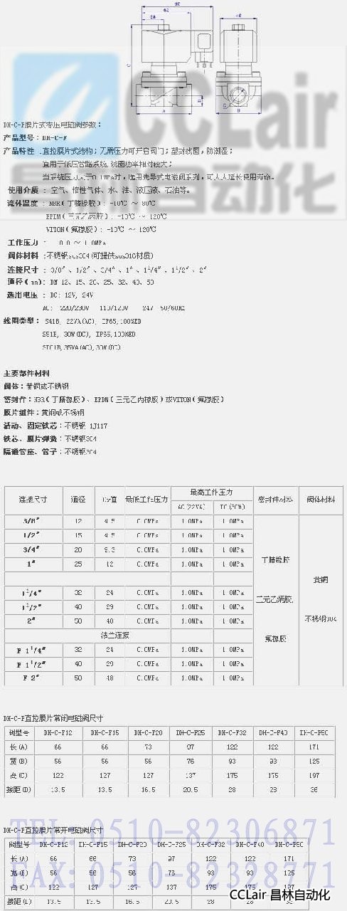 DH-C-F12,DH-C-F15,DH-C-F20,DH-C-F25,DH-C-F32,DH-C-F40,DH-C-F50,膜片式零壓差電磁閥