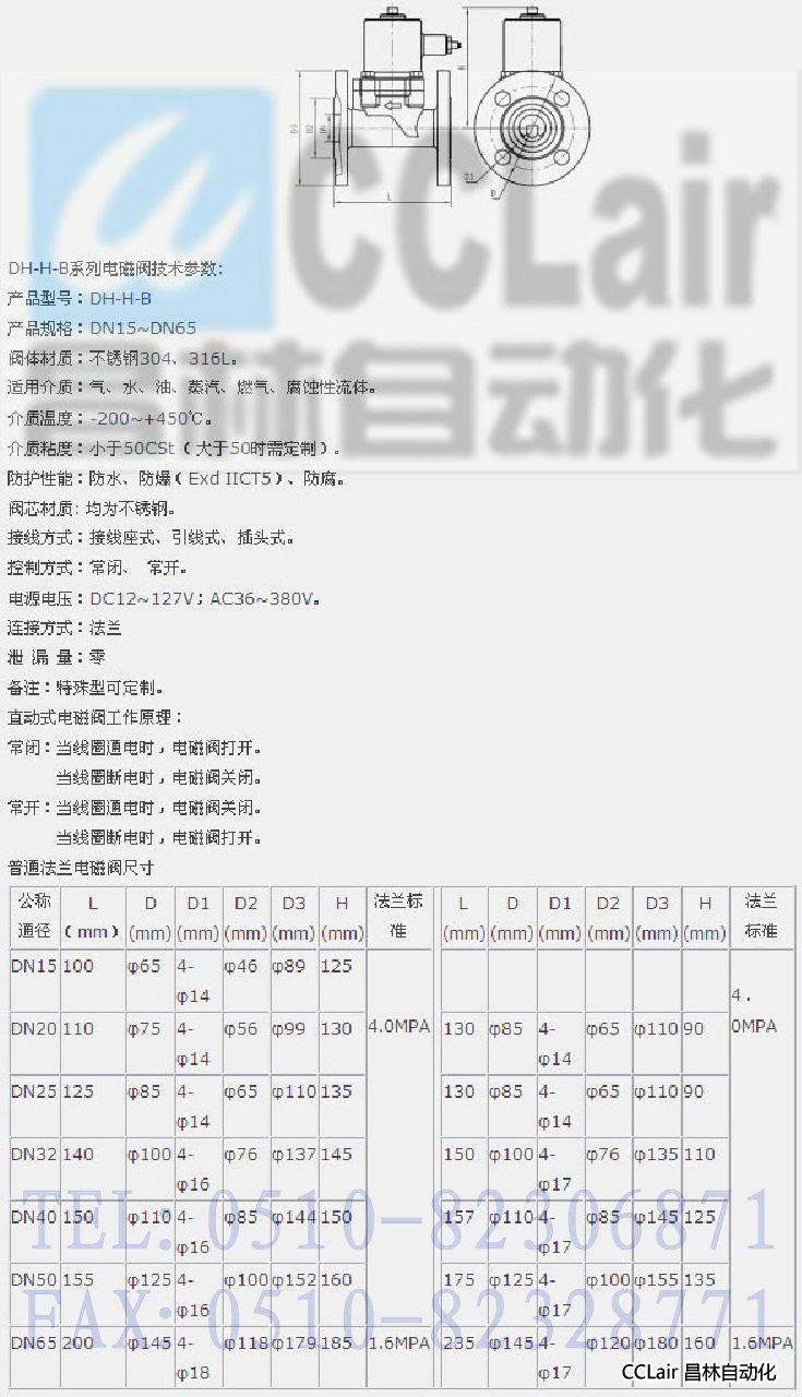 詳細信息 DH-H-B15,DH-H-B20,DH-H-B25,DH-H-B32,DH-H-B40,DH-H-B50,DH-H-B65,直動式電磁閥