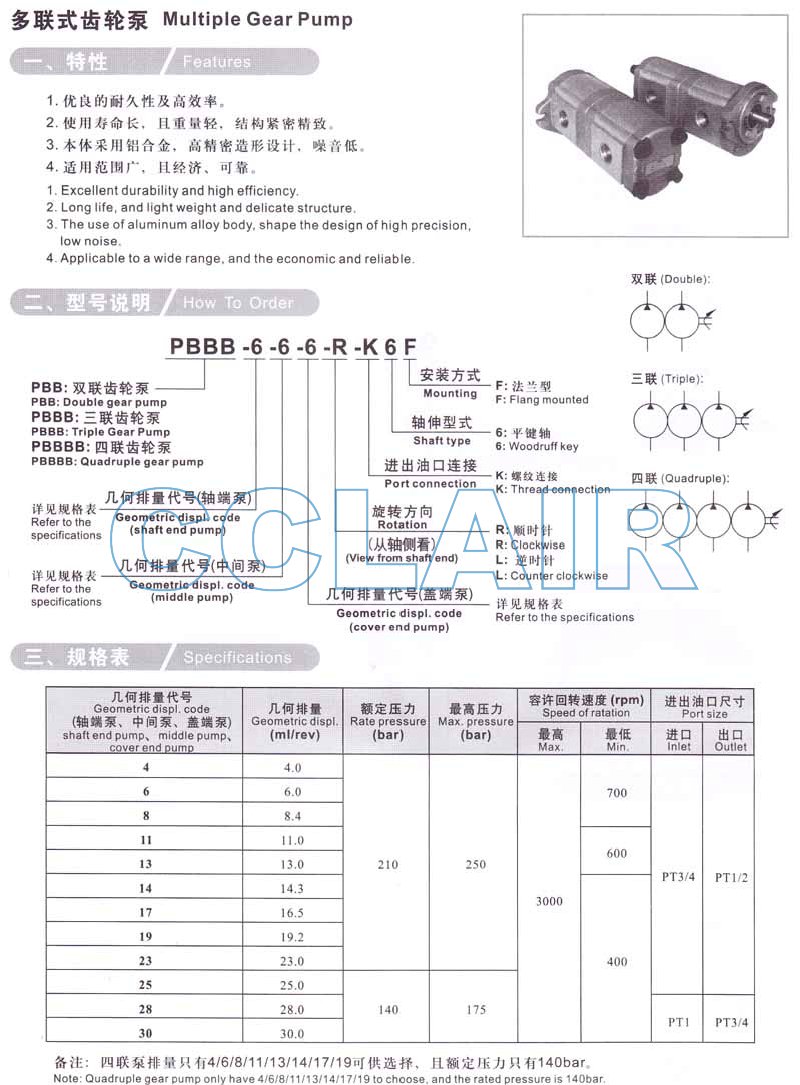 PBB-4,PBB-6,PBB-8,PBB-11,PBB-13,PBB-23,PBB-30,PBB-6-6-R-K6F,PBB-4-4-R-K6F,多聯(lián)式齒輪泵