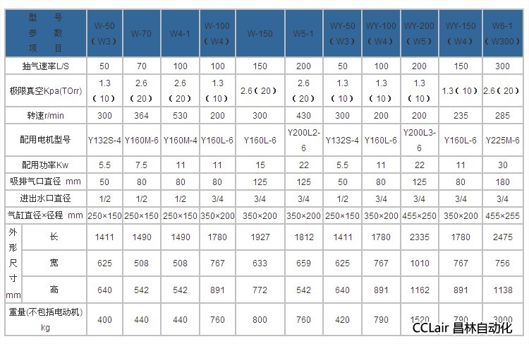 W-50(W3),W-70,W4-1,W-100(W4),W-150,W5-1,W6-1(W300),往復(fù)式真空泵