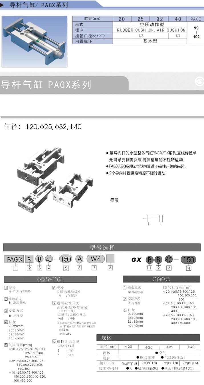 PAGXBB20-25,PAGXBB20-25A,PAGXBB20-50,PAGXBB20-50A,PAGXBB20-75,PAGXBB20-75A,導(dǎo)桿氣缸-PAGX系列