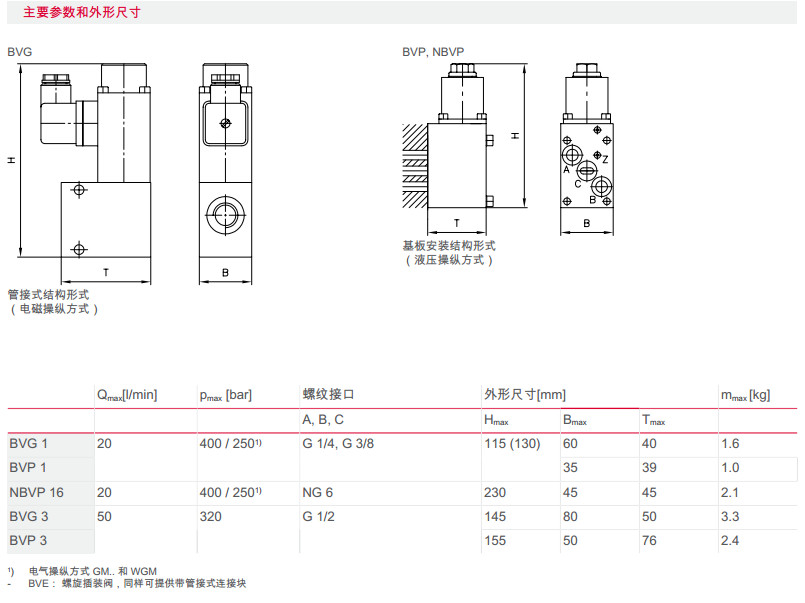 BVG1-R/B2-1/4-WGM230,BVP1-S/B2-1/4-WGM230,NBVP16-ZK/B2-1/4-WGM230,截止式換向閥