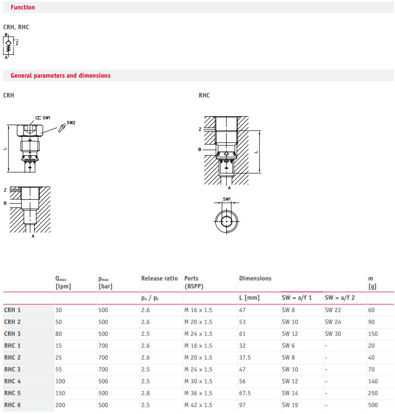 詳細(xì)信息 CRH1V,CRH2V,CRH3V,RHC1V,RHC2V,RHC3V,RHC4V,RHC5V,RHC6V,液控單向閥