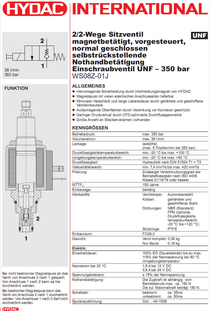 首頁 > 產(chǎn)品&解決方案 > WS08Z-01J-C-N-24DG,WS08Z-01J-C-N-230AG,HYDAC電磁2/2方向座閥