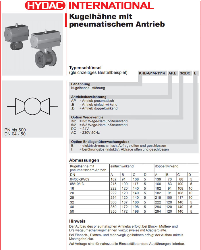 KHB-G1/4-1114,HYDAC 2路高壓球閥