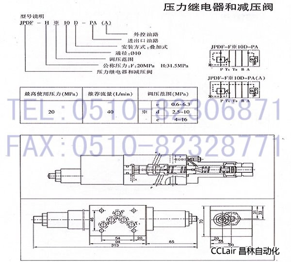 JPDF-Fd10D-PA(A),JPDF-Fe10D-PA(A),壓力繼電器和減壓閥