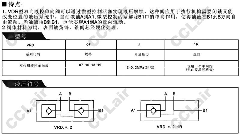 詳細(xì)信息 VRD07-2,VRD10-2,VRD13-2,VRD19-2,液控單向閥