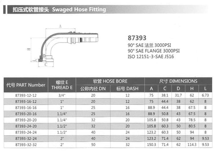 詳細(xì)信息 87393-12-12,87393-16-12,87393-20-16,87393-24-20,87393-32-32,扣壓式軟管接頭