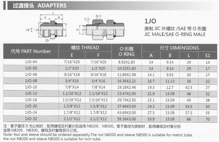 詳細信息 1JO-04,1JO-05,1JO-06,1JO-08,1JO-10,1JO-12,1JO-16,1JO-20,1JO-24,1JO-32,過渡接頭