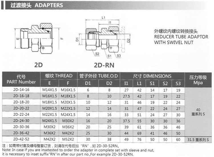 詳細(xì)信息 2D-14-16,2D-16-18,2D-18-20,2D-20-22,2D-22-24,2D-24-30,2D-30-36,2D-36-42,2D-42-52,轉(zhuǎn)換接頭