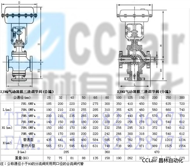 ZJHQ-1.6,ZJHQ-4.0,ZJHQ-6.4,ZJHQ-16,ZJHQ-40,ZJHQ-64,氣動薄膜三通調(diào)節(jié)閥