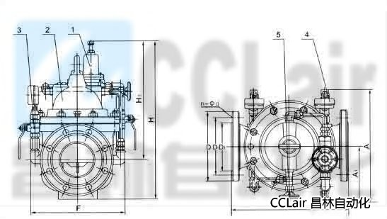 1、導(dǎo)閥2、主閥3、球閥4、壓力表5、針表