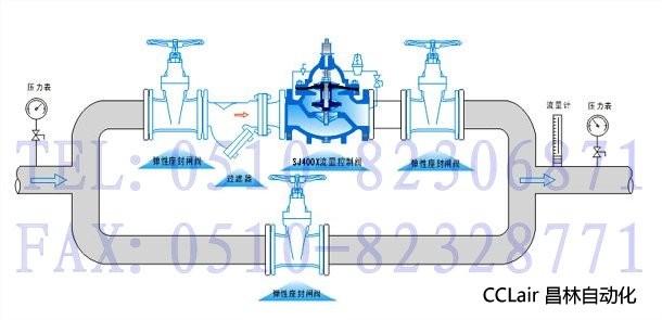 400X流量控制閥由主閥、流量調(diào)節(jié)閥、針閥、導(dǎo)閥、球閥、微形過(guò)濾器和壓力表組成水力控制接管系統(tǒng)。利用水力自動(dòng)操作,控制和調(diào)節(jié)主閥開度,使通過(guò)主閥的流量保持不變。