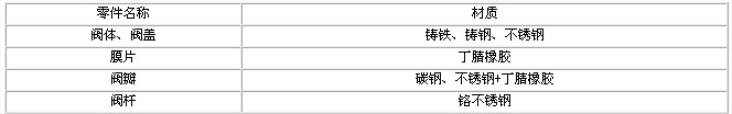 隔膜式池底卸泥閥主要零件材質(zhì)如下表: