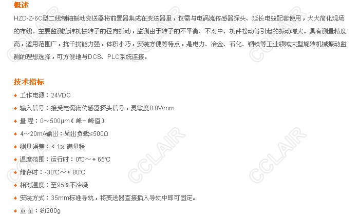 » HZD-Z-6C,兩線制軸振動變送器