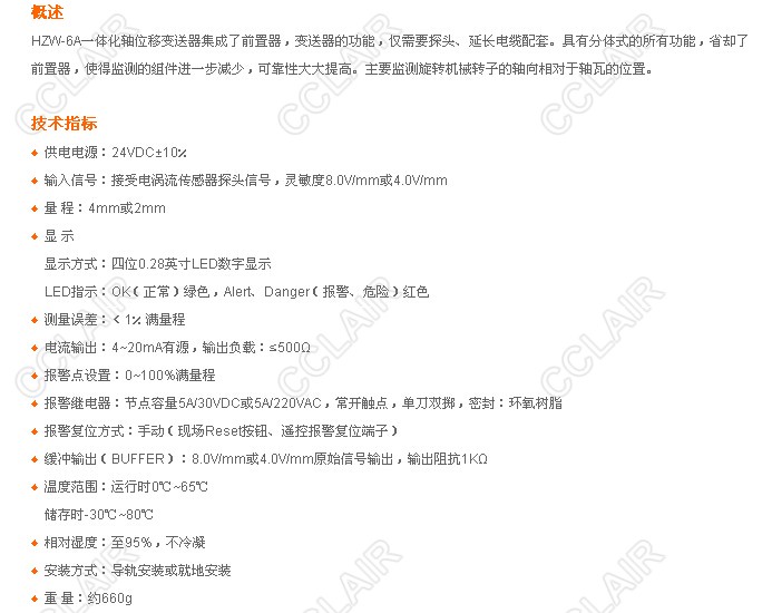 » HZW-6A,一體化軸位移變送器