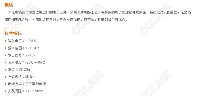 » WT-φ16,一體化電渦流傳感器
